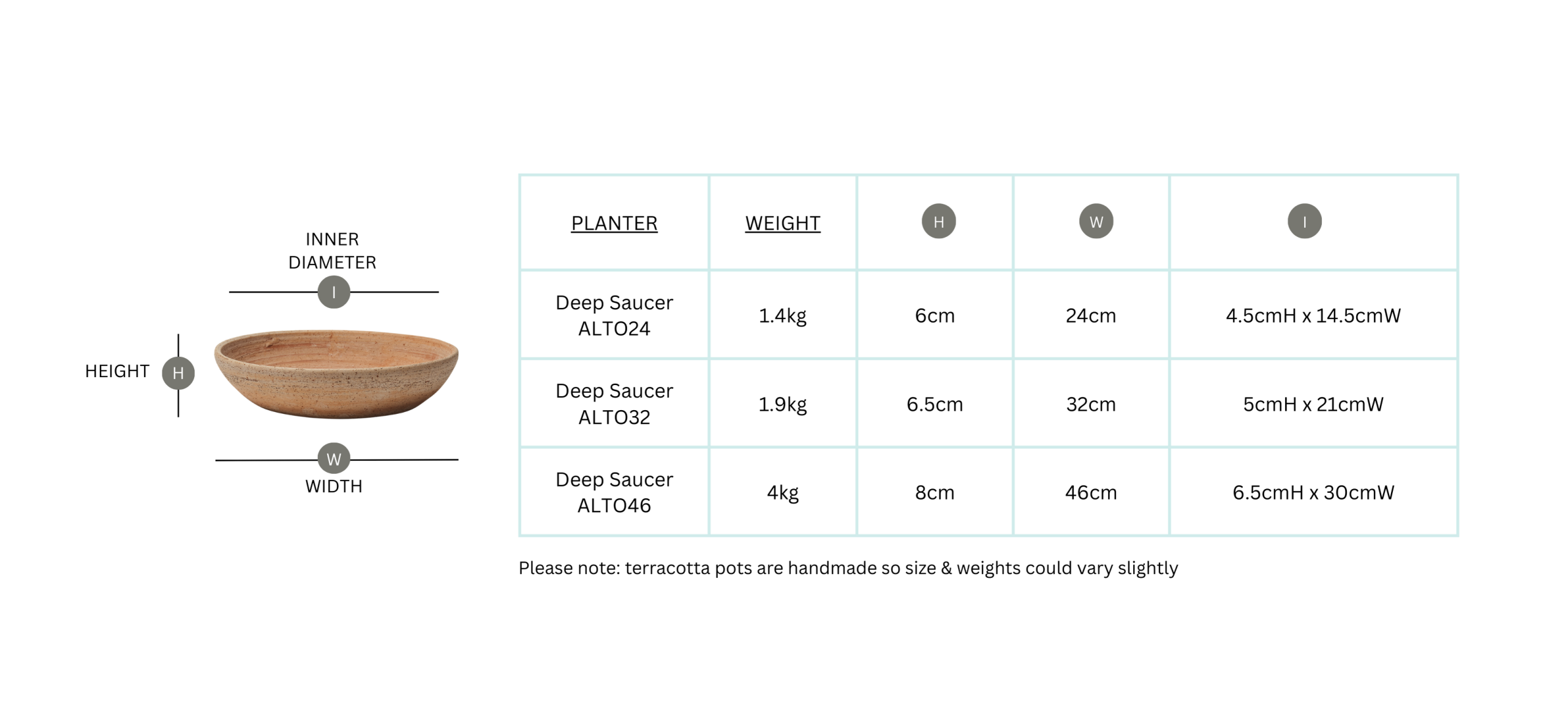 The Alto wide low bowl are perfect for outdoor table succulent bowl arrangements. From three sizes to choose from, these textured bowls are made from breathable and water-resistant terracotta. Drainage holes not included.