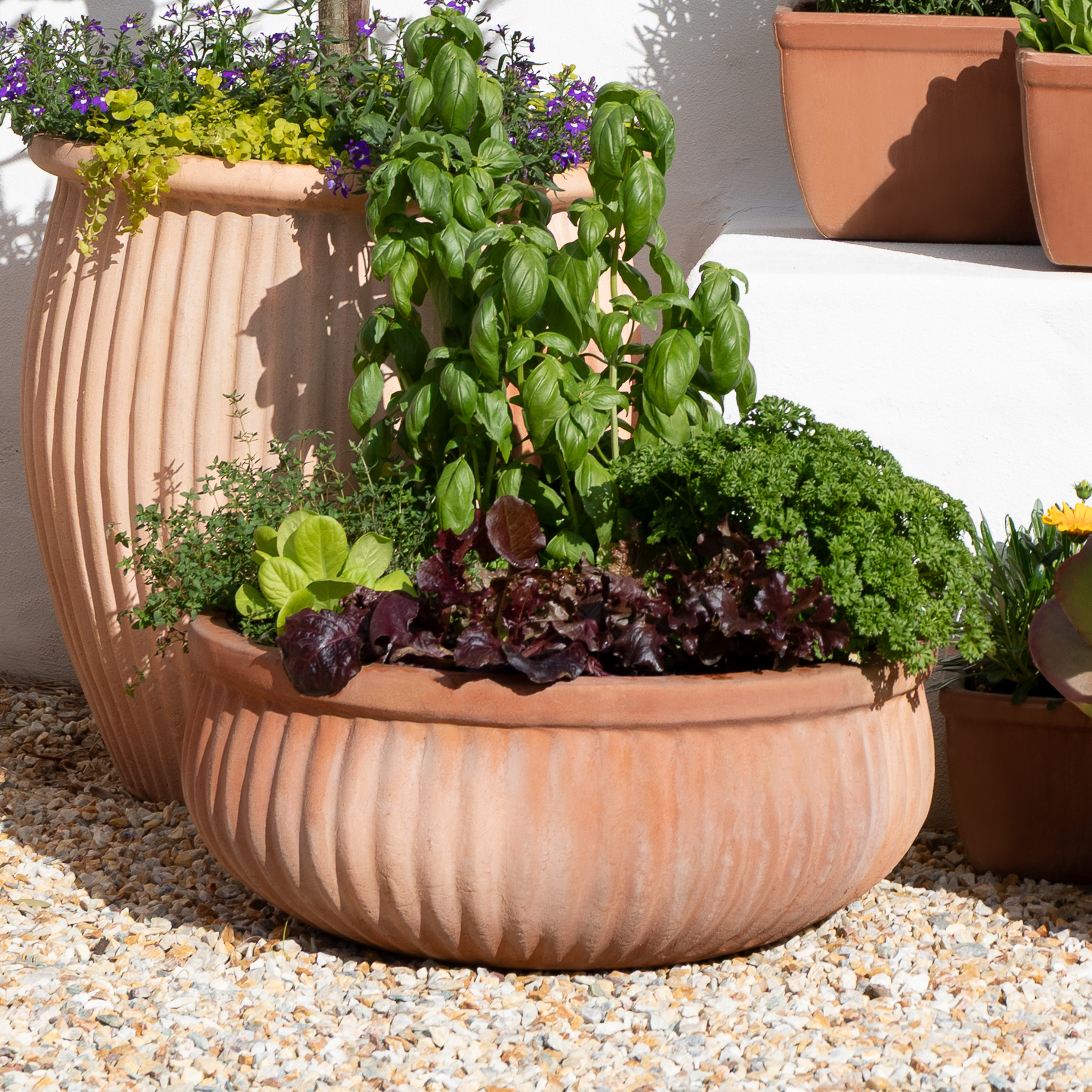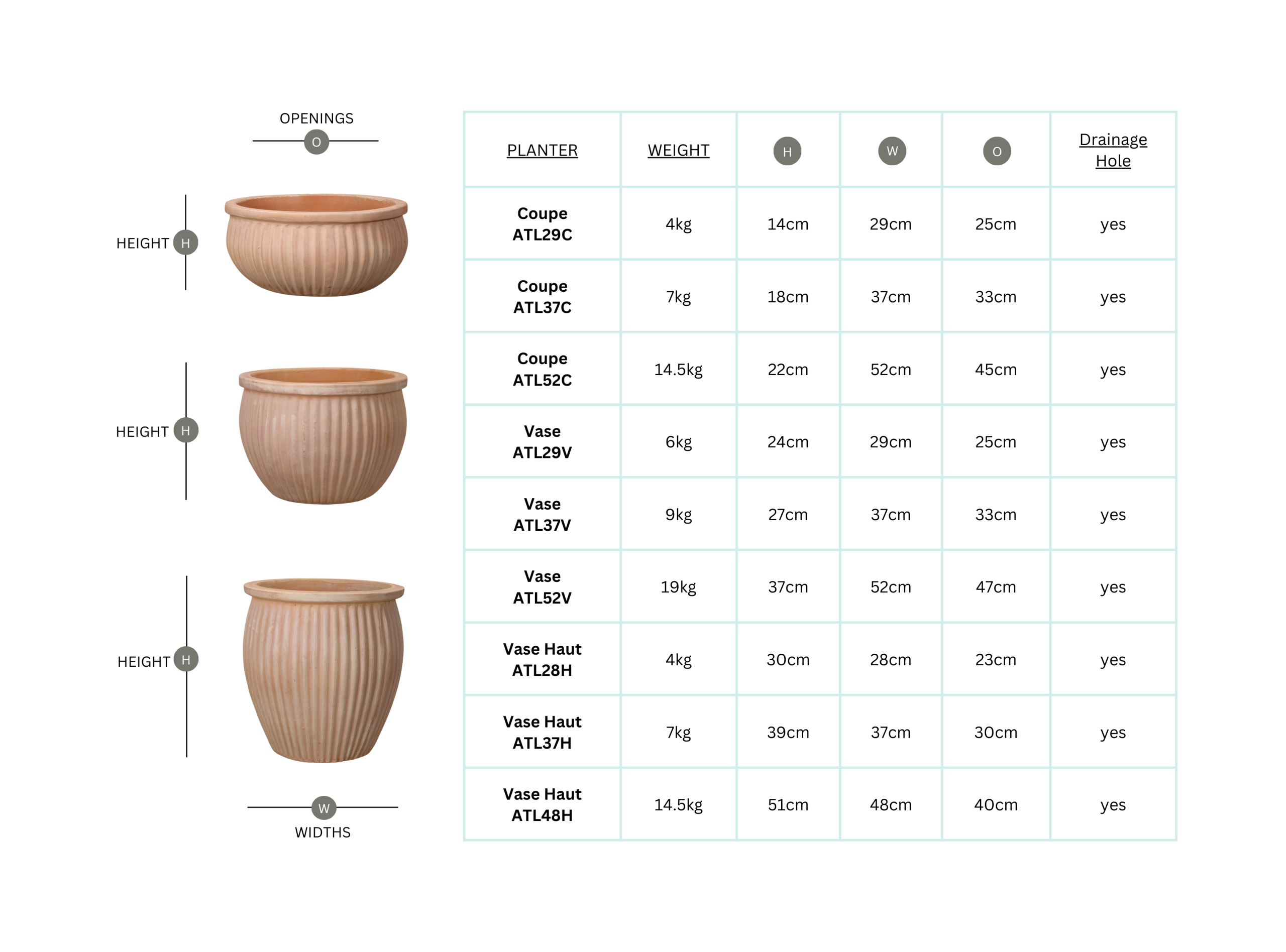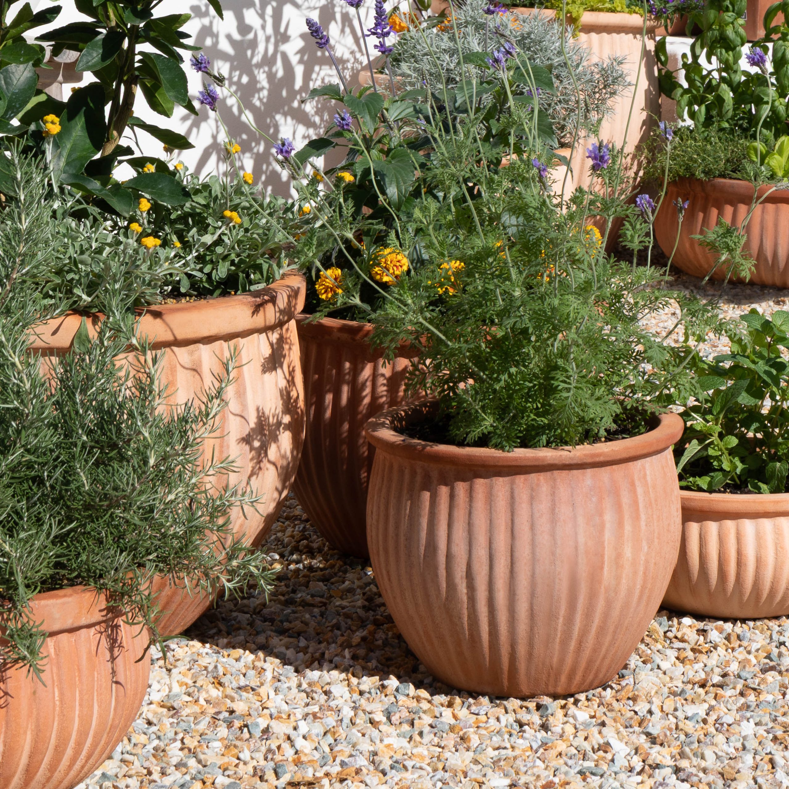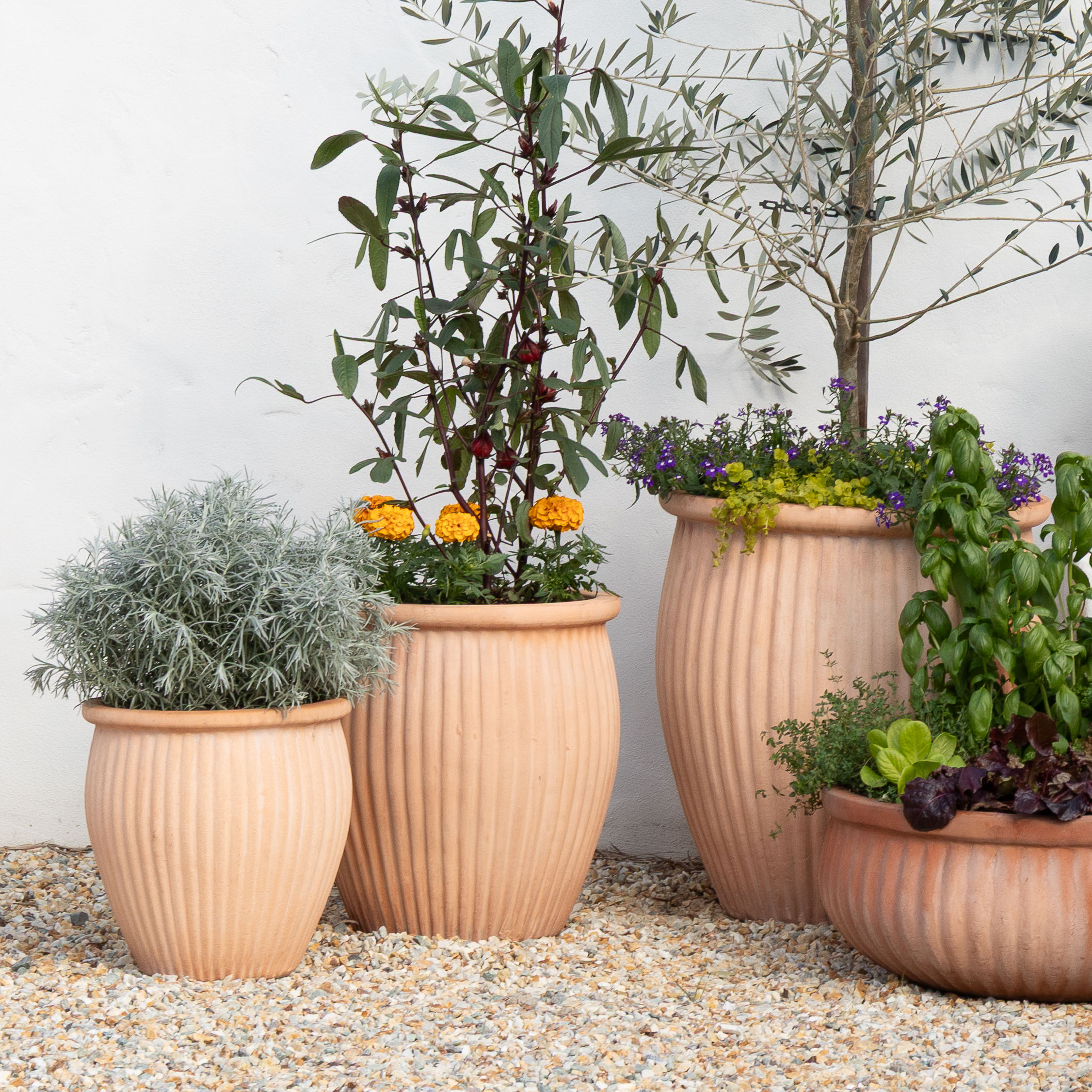 The Atlas Pots with their distinctive lines and three beautiful shape options are perfect for creating a beautiful terracotta courtyard or market garden. Handmade, using ancient craftmanship these pots are all unique pieces. Outdoor use only. All include drainage holes.