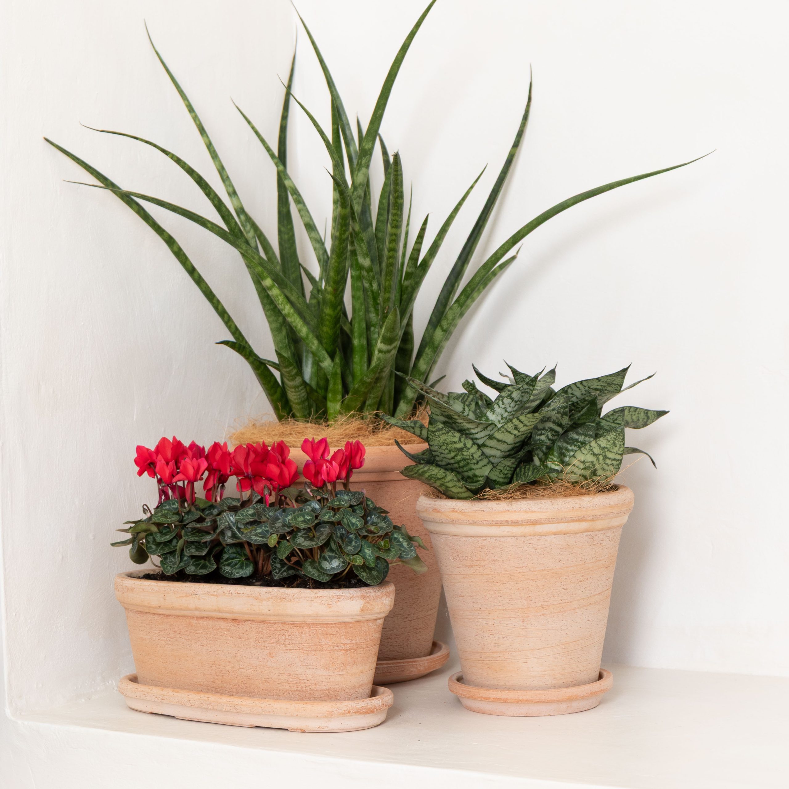 Traditionally crafted in Italy out of natural Galestro clay from the Tuscan Hills, the Etrusco terracotta pots, bowl and window box exude a timeless elegance. Perfect for smaller potted table and floor-standing arrangements. All have drainage holes except the saucer. Suitable for indoor or outdoor use Saucers recommended for indoor use – see accessories Pot feet available for the floor-standing pots- see accessories