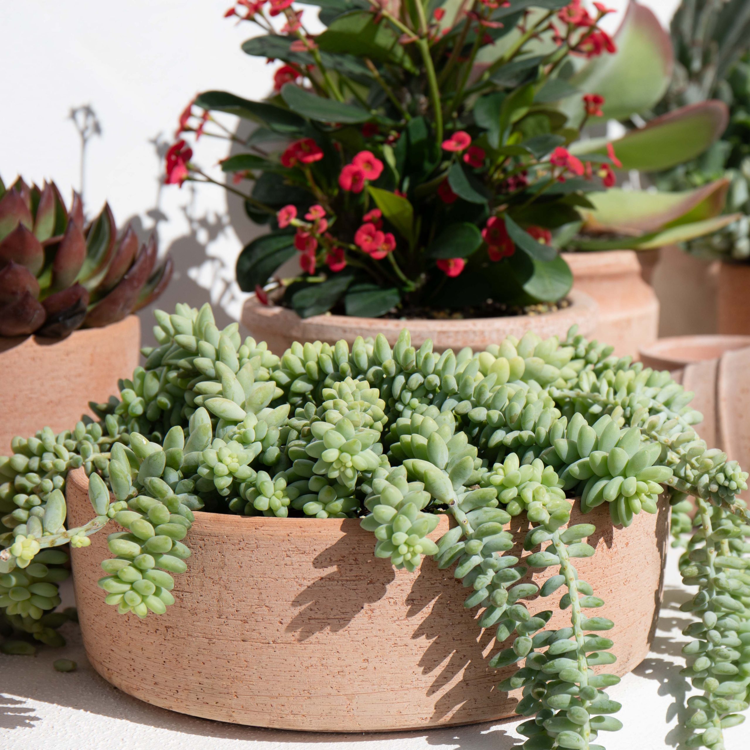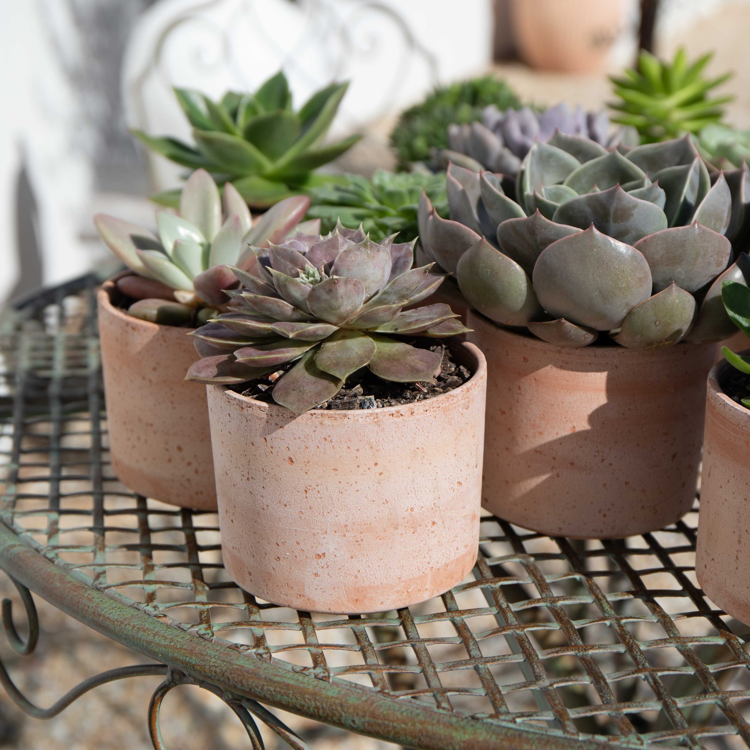 The popular textured Luna terracotta cylinders, bowl and window box are traditionally crafted in Italy out of natural Galestro clay from the hills of Tuscany. Perfect for smaller table top arrangements or on their own. Drainage holes not included.