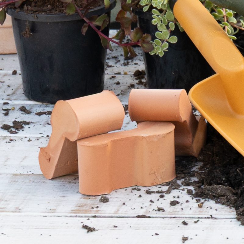 Terracotta Pot Feet to assist in lifting up plant pots on hard surfaces to allow water to flow through the drainage holes and prevent water blockage or surface staining. Sold in pack of three.